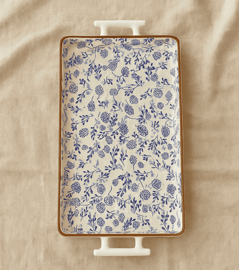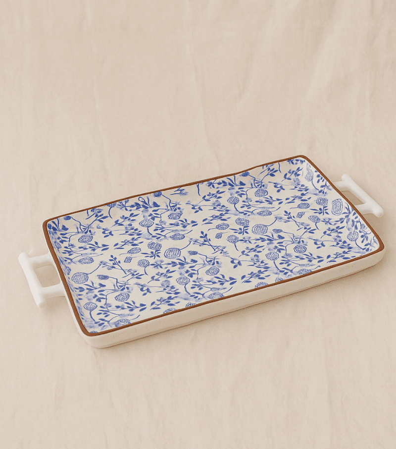 Sculptural and practical, the Majestic Indigo Tray brings a sense of artistry to entertaining. Its rich blue glaze, elongated form, and gently raised edges make it a stunning backdrop for breads, canapés, or sweets.