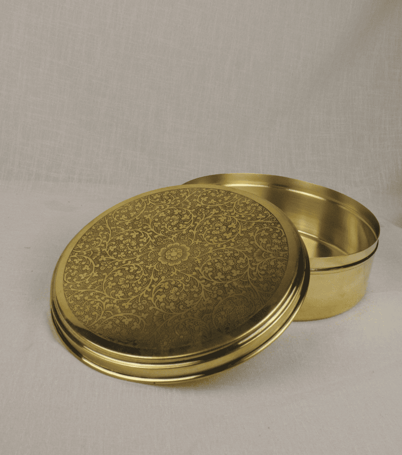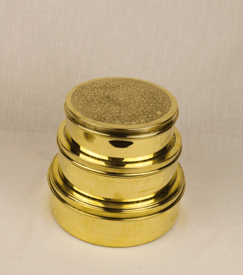 Handcrafted in pure brass (peetal) with intricate engraving on lids