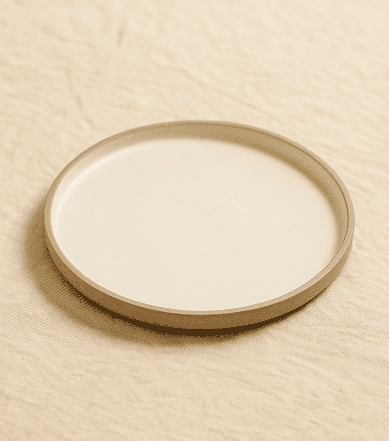 - Handcrafted ceramic plate in warm vanilla tones